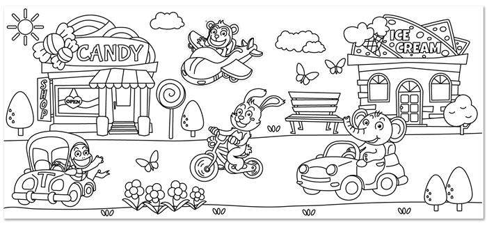 Színező tekercs, öntapadó, 31x355 cm, STICK N, vidám délután